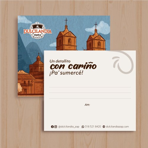 Una ñapa de cariño que nunca sobra. La tarjeta dedicatoria de Dulcilandia es ese detalle que convierte un dulce en un regalo con historia. Escrita con tus palabras y entregada con nuestra tradición, es como la voz del Nono en papel: sencilla, honesta y entrañable. Perfecta para acompañar cocadas, brevas o ‘Deliciosos’ y hacer que quien la reciba no solo pruebe un sabor auténtico, sino que sienta el calor de un mensaje especial. Porque lo hecho a mano y con cariño no está completo sin unas buenas palabras.